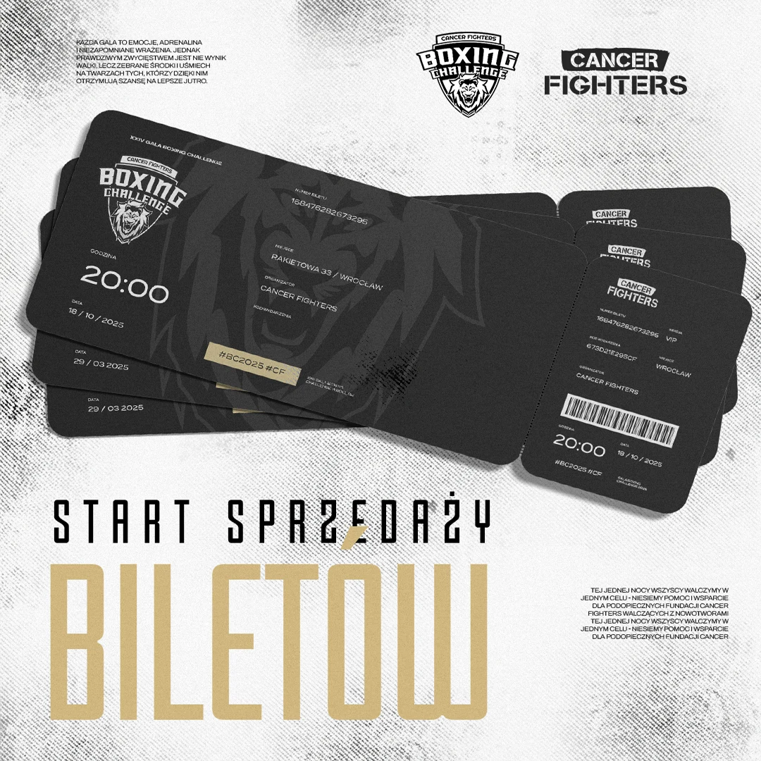 Bez względu na to czy reprezentujesz biznes, pracujesz w korporacji, jesteś trenerem personalnym czy freelancerem. Tej jednej nocy wszyscy walczymy w jednym celu, a jest nim zbiórka funduszy dla naszych prawdziwych wojowników – podopiecznych Fundacji Cancer Fighters – zmagających się z chorobami nowotworowymi, których od lat wspieramy w walce o zwycięstwo nad rakiem.